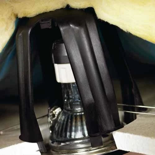 Cette protection sécurise la pose de votre spot encastré au faux-plafond, elle permet de créer un espace suffisant entre l’isolant et l’arrière du spot afin de respecter les recommandations d’installation.