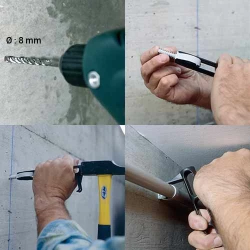 - Démontable, vous pouvez poser et retirer la fixation pour tube à l’aide d’un marteau et d’un tournevis.