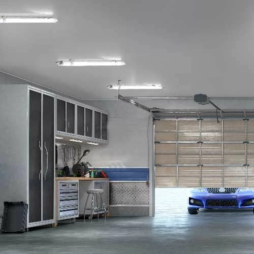 Cette réglette avec module LED intégré dispose d’une très bonne étanchéité à la poussière et aux jets d’eau (IP65), c’est une solution d’éclairage parfaitement adaptée pour éclairer un garage, un sous-sol ou une buanderie.