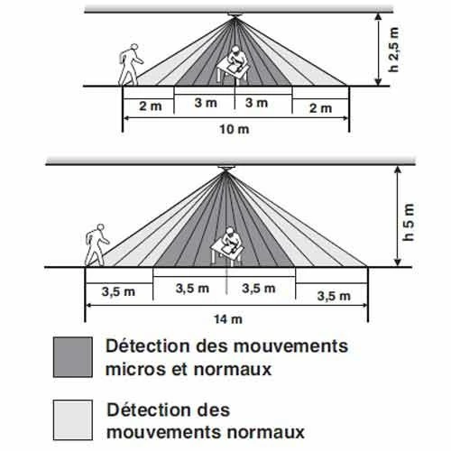 - durant la nuit ou quand il fait sombre, le détecteur de présence allume le dispositif d’éclairage quand il détecte un mouvement dans sa zone de couverture qui est de 14m avec un angle à 360°
