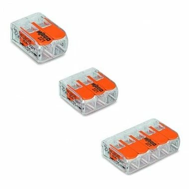 Ce panaché comprend des bornes Wago équipées de leviers pouvant accueillir 2, 3 ou 5 fils électriques.